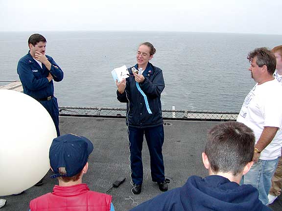 LHD-6 Tiger Cruise 2003 / AG2 Cory Wittman doing weather balloon launch demonstration and explaining the use and functions of balloon radio transmitter.