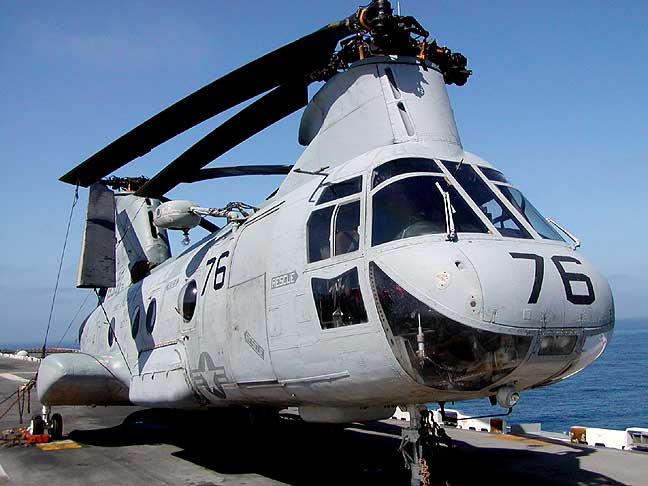 CH-46 "Sea Knight" all secured on flight deck after SAR demonstration.